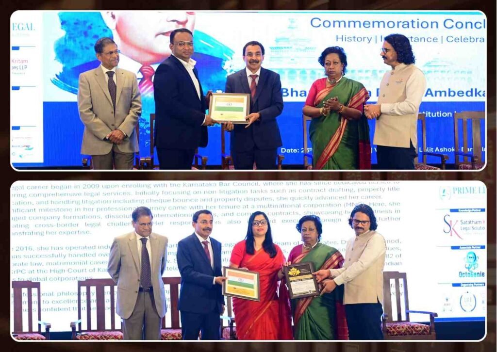 On Indian Constitution Day, 26th November 2025, distinguished legal professionals were honored for their exceptional contributions to the legal profession. Advocate Ayantika Mondal, Partner at Prime Legal, received the prestigious Legal Luminary Award, while Anik M Iktear Uddin was recognized for his exemplary work and unwavering dedication to constitutional values and justice.