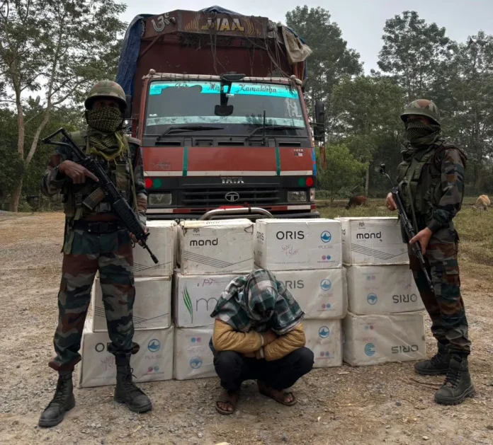 The team arrested the truck driver, Giashuddin (36), during the operation. He is the son of Maynul Haque and a resident of Baitakhal Basti, Patharkandi, in Assam’s Karimganj district.