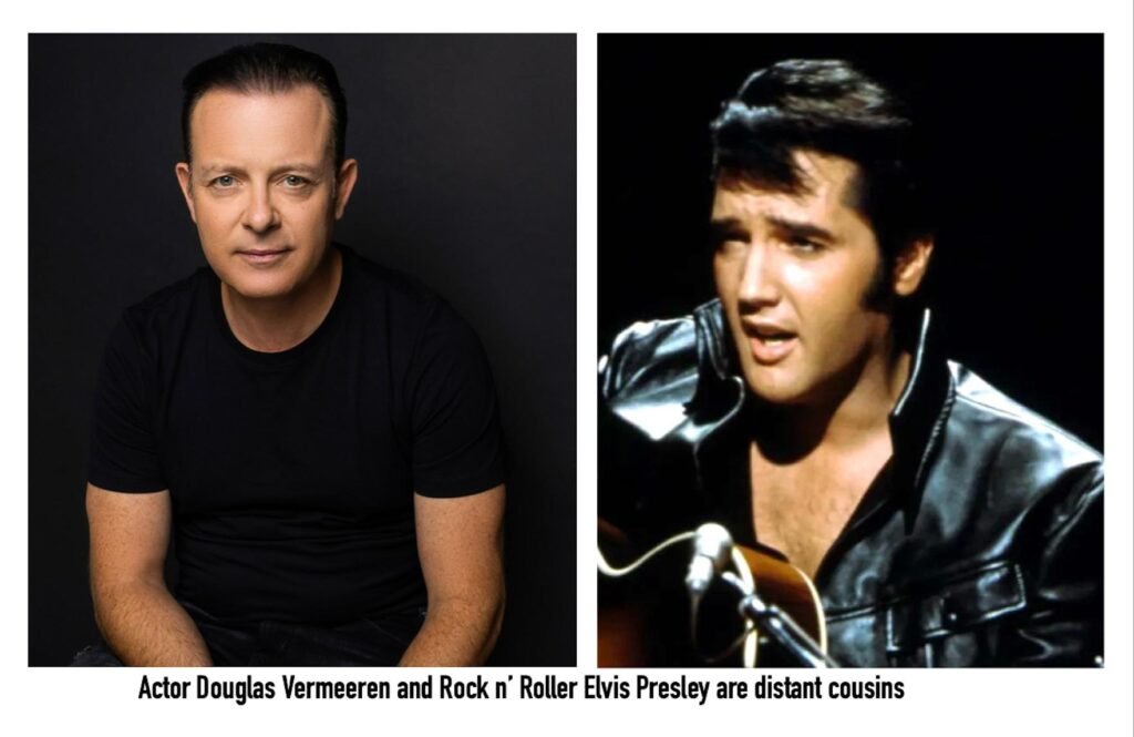 It’s not every day that two entertainers from entirely different generations, genres, and backgrounds share more than just fame—but also blood. Yet that’s exactly the case with Canadian actor Douglas Vermeeren and the legendary King of Rock and Roll, Elvis Presley. The two are third or fourth cousins, linked through their mothers’ sides by a shared Smith ancestry. While they rose to prominence in different eras and followed unique artistic paths, their similarities run far deeper than DNA, love of cheeseburgers, peanut butter and banana sandwiches and motorcycles.