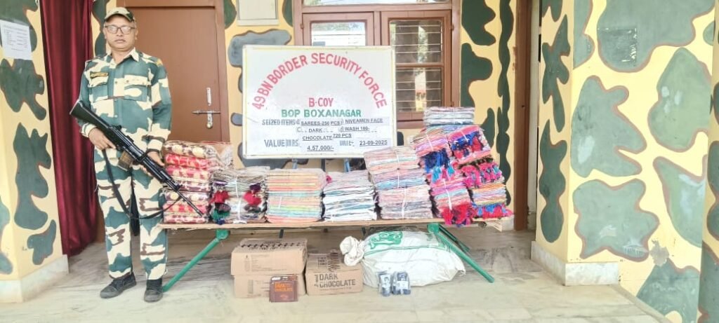 In a major success against cross-border smuggling, vigilant troops of the Border Security Force (BSF) Tripura foiled multiple smuggling attempts along the Indo-Bangladesh border during the intervening night of September 23–24, 2025. The security personnel seized contraband items, including clothes, cosmetics, and firecrackers, with an estimated market value of ₹22 lakh.