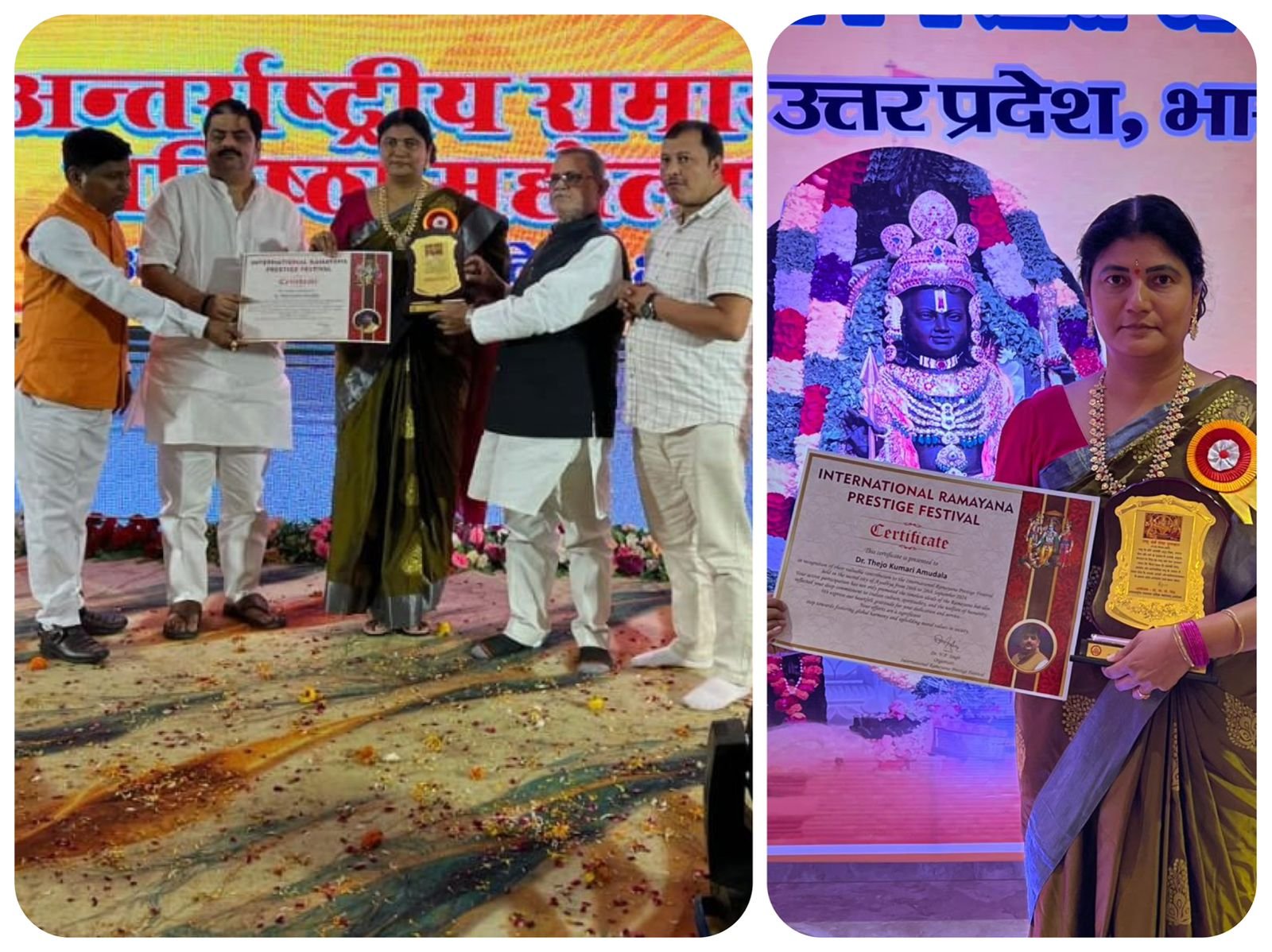 Former Mrs. Universe winner and global peace ambassador, Dr. Thejo Kumari Amudala, was a guest of honor at the International Ramayana Prathishta Mahothsav held recently in Ayodhya.