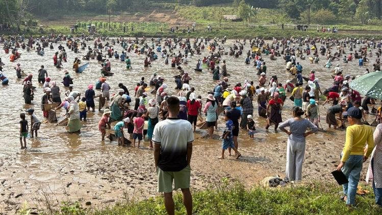 A key highlight of the festival in Marngar was the traditional community fishing practice. Villagers entered water bodies together and used indigenous techniques to catch fish.