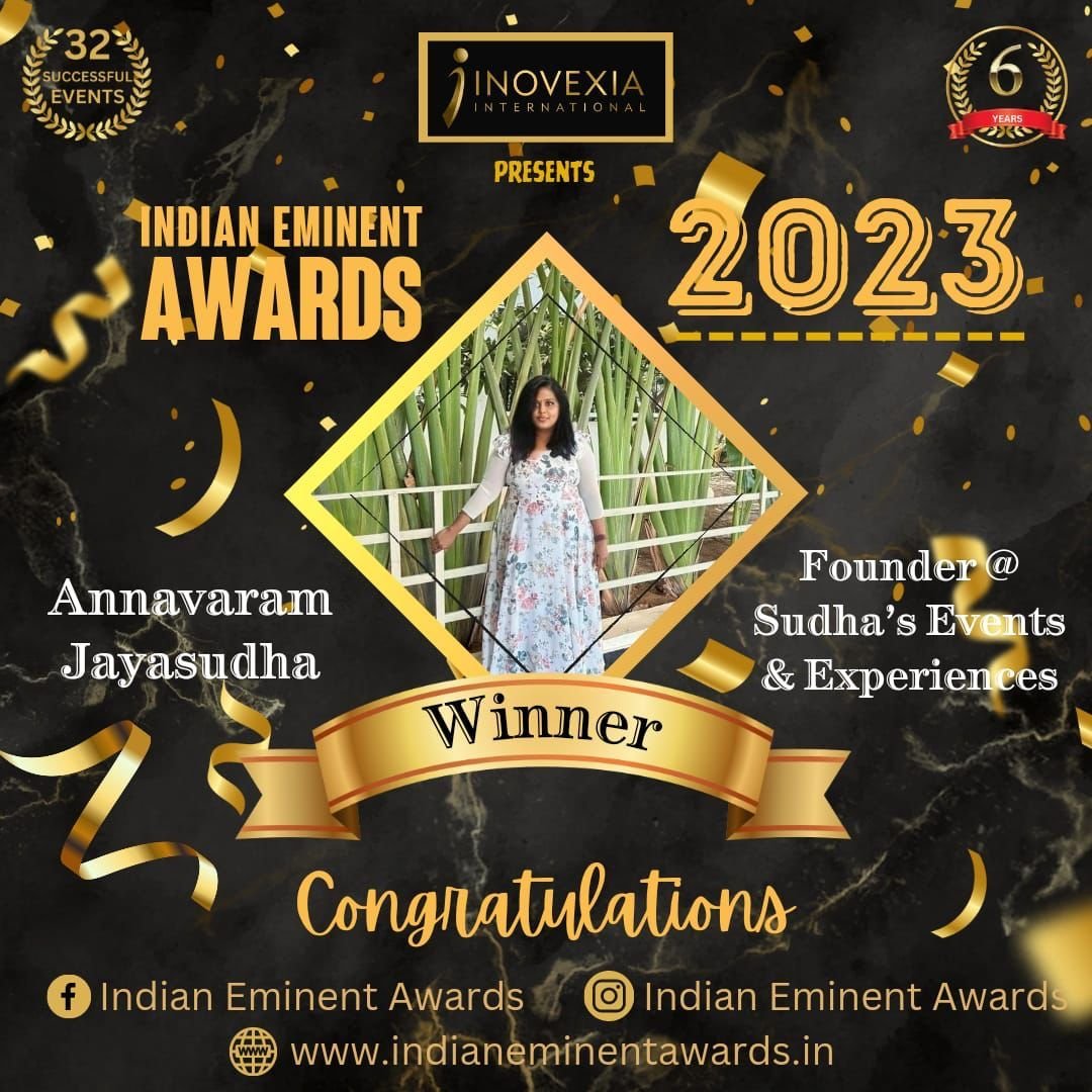 Annavaram Jayasudha’s achievement of winning the Indian Eminent Award is well-deserved recognition of her outstanding work in the event organizing industry. Her passion, dedication, and customer-centric approach have helped her create a successful business that has become a leader in the industry. Her success story is a testament to the fact that hard work, determination, and a customer-focused approach can take you places in life.