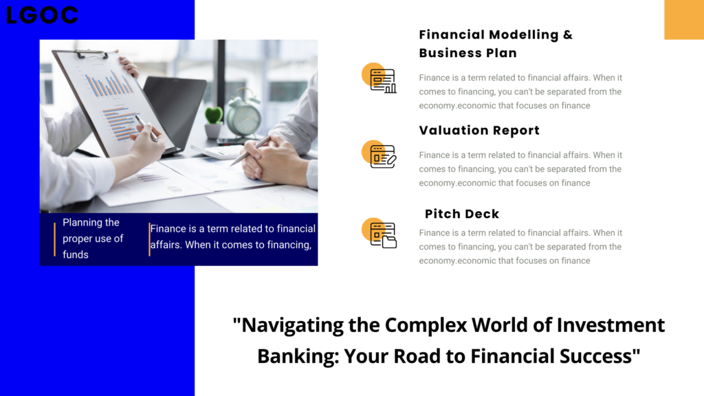 In an era where financial precision is the cornerstone of success, LGOC stands as a trailblazer in offering a comprehensive suite of services designed to empower businesses and entrepreneurs to excel. Specializing in crafting Financial Models, Valuation Reports, Pitch Decks, and Business Plans, LGOC is reshaping the way companies prepare for growth, secure investments, and navigate the ever-evolving financial landscape. We explore how LGOC is leading the charge in delivering financial excellence.
