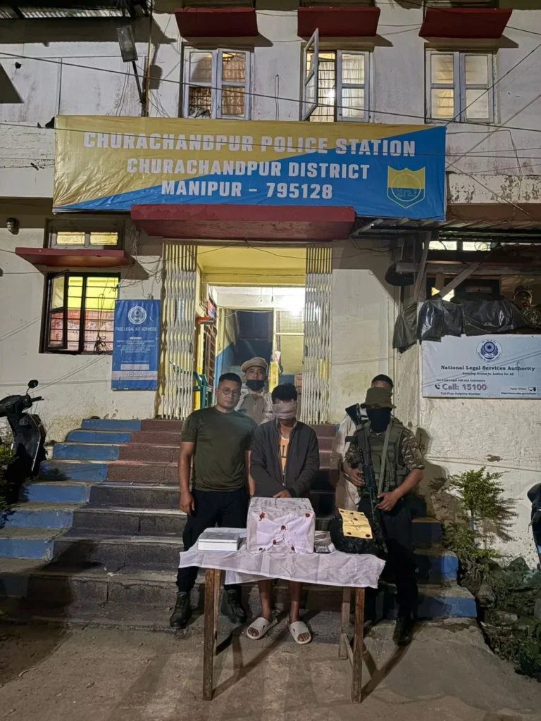 Police conducted a targeted operation in Saidan village under Churachandpur Police Station. During the raid, officers arrested Samuel Guite (28) from his residence.