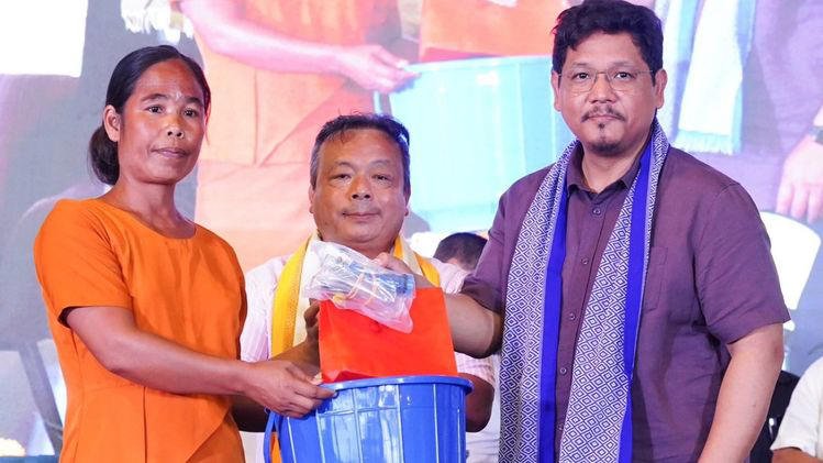 CM Conrad Sangma hands out mobile phones and water filters to villagers in Samanda