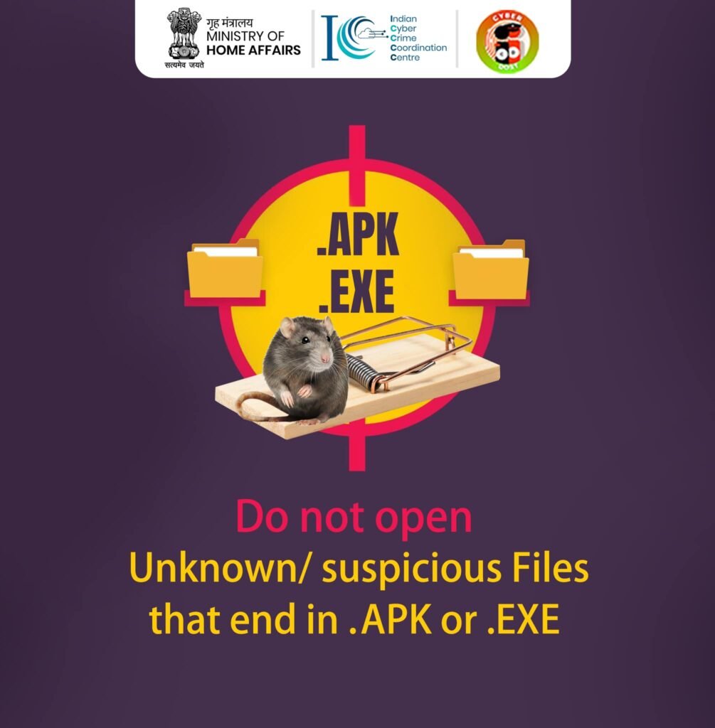Ministry of Home Affairs has issued a notification urging individuals to exercise caution while handling digital files from unknown sources. The advisory specifically highlights the need to refrain from opening files with suspicious extensions such as .APK or .Exe.