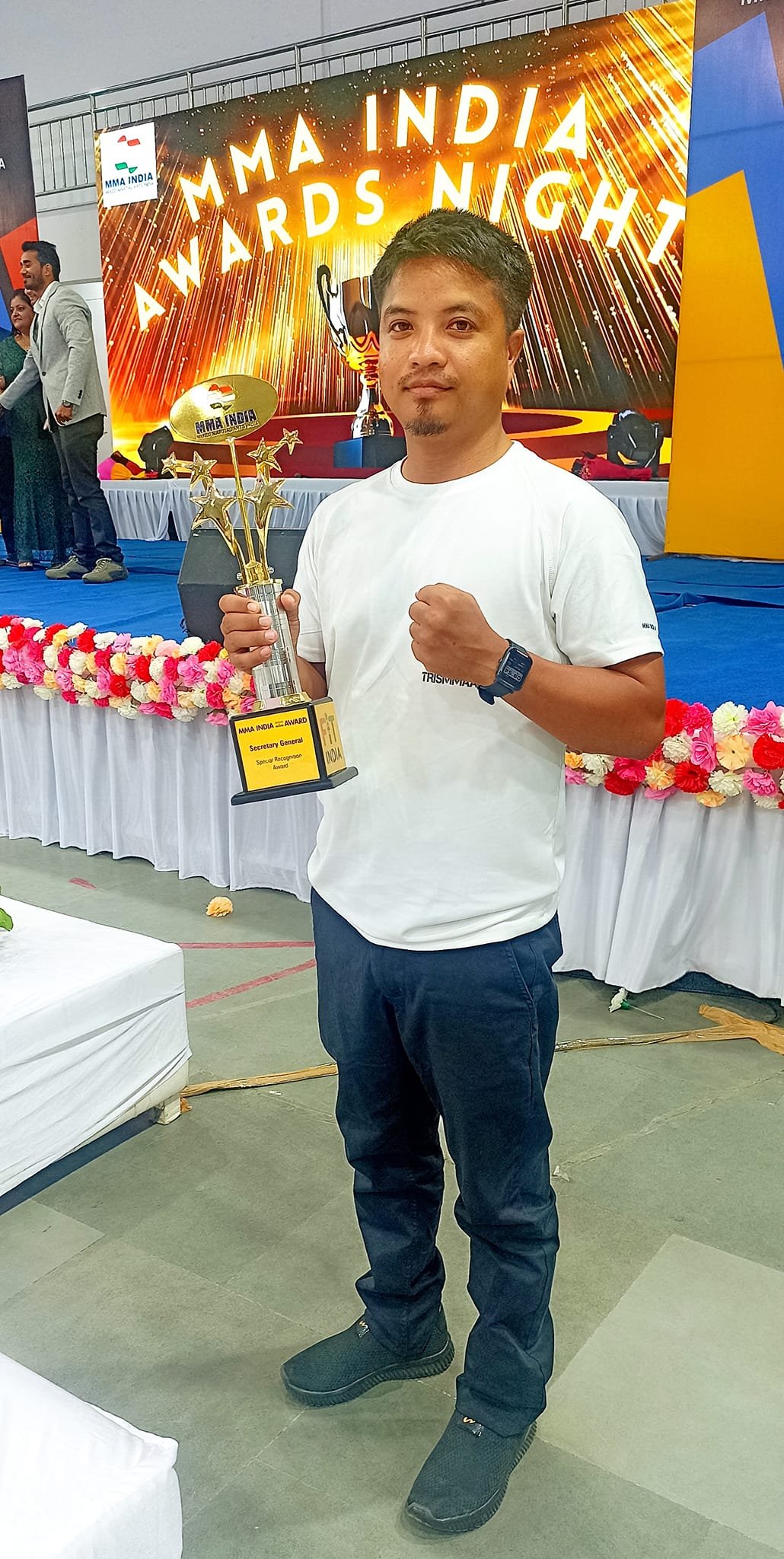 TRIPURA, INDIA – In a momentous event held, MMA Tripura was honored with the prestigious Secretary-General Award for its exceptional performance and unwavering dedication in the face of numerous challenges. The award was received by Kru Raymond Bongcher, a renowned figure in the martial arts community.