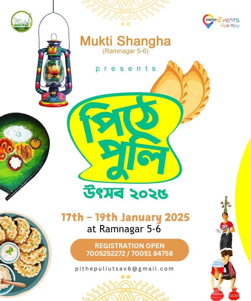 The vibrant city of Agartala is all set to host the much-awaited first edition of Pithe Puli Utsav, a three-day celebration that will take place from January 17 to 19 at Mukti Sangha, Ramnagar 6, Agartala. Presented by Mukti Sangha, In-Association with Amar Tripura and Curated by Agartala Events For You, A Venture of Totell. This cultural and culinary extravaganza promises to bring the essence of Bengali heritage to life through delectable sweets, live performances, and traditional festivities.