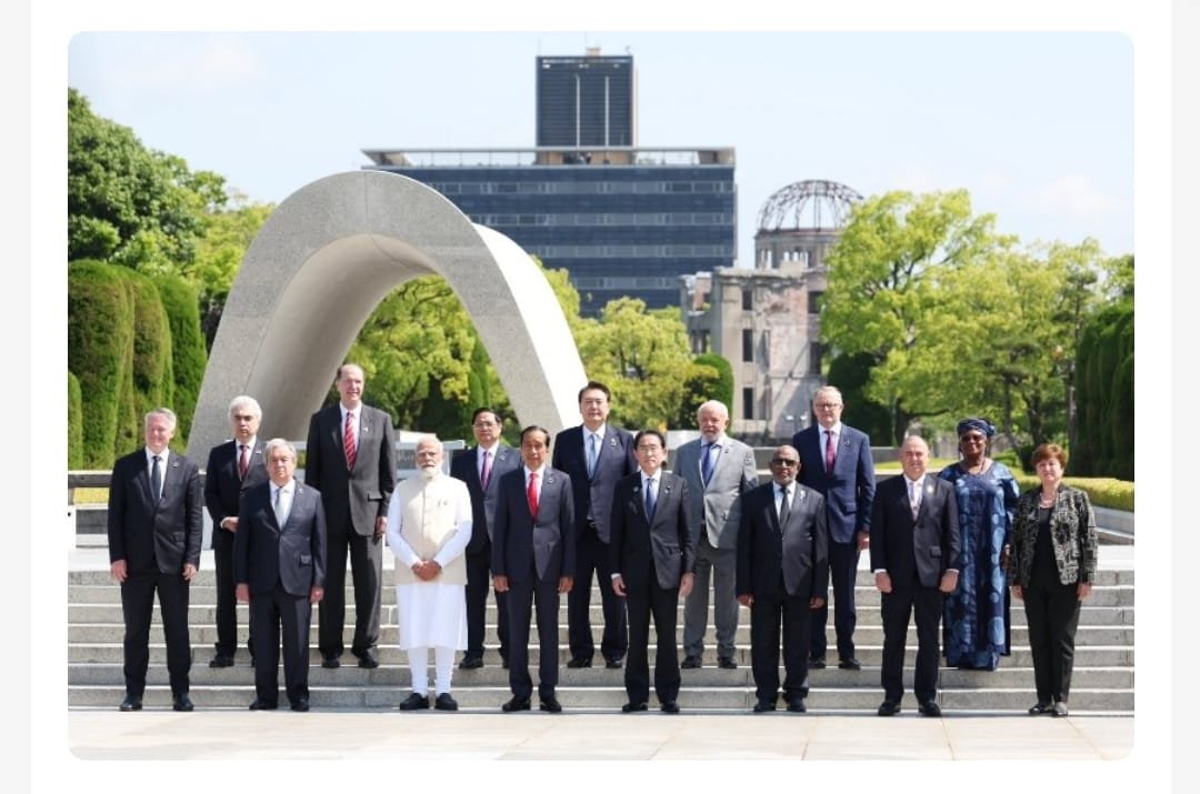 New Delhi/Hiroshima/IBNS: Prime Minister Narendra Modi commenced the day by participating in a solemn visit to the Hiroshima Peace Memorial Park and Museum, alongside other world leaders attending the G7 Summit.