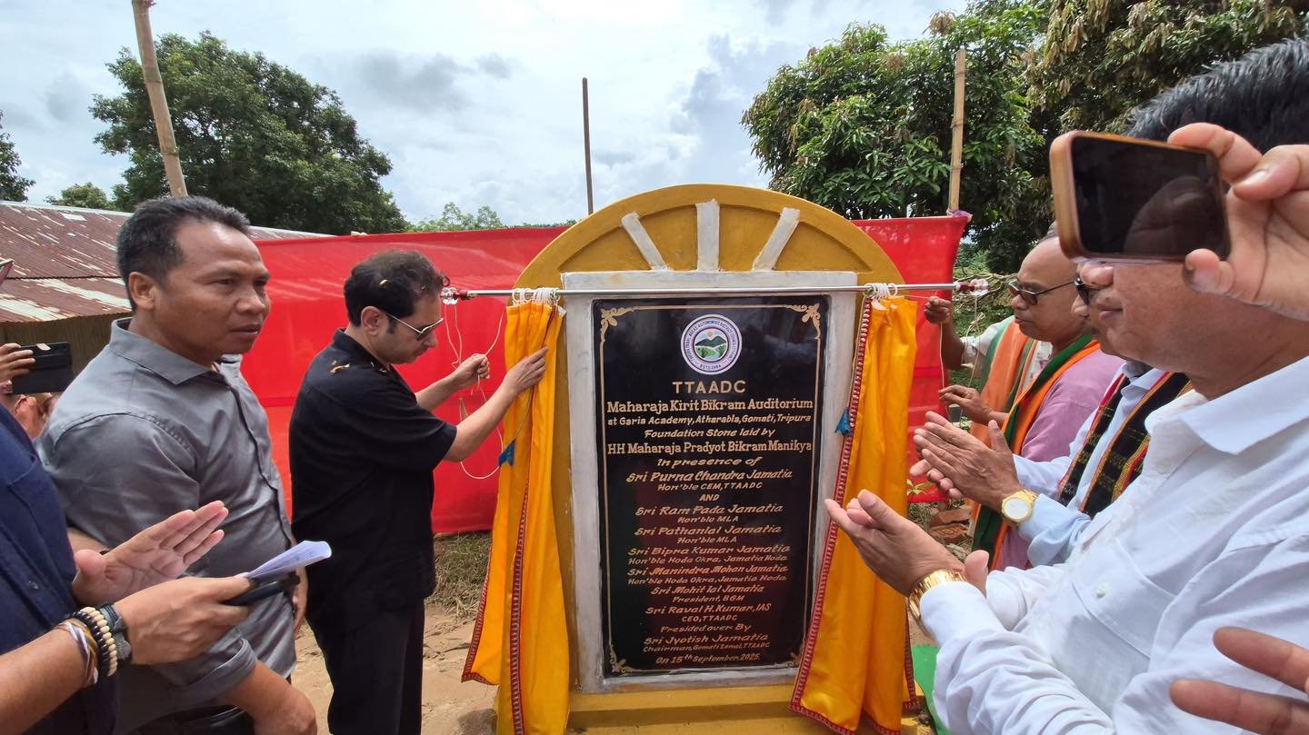 Gomati, September 15, 2025: Bubagra Pradyot Bikram Manikya Debbarma, Hon’ble Chairman of the Adivasi Area Reforms Council (AARC) and a key leader of the Tripura Tribal Areas Autonomous District Council (TTAADC), attended the foundation stone laying ceremony of the Maharaja Kirit Bikram Auditorium at Garia Academy, Atharabla, in Gomati district.