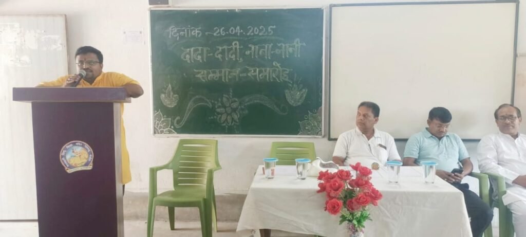 In the introduction of the program, Acharya Uday Kumar Mishra said that this honor program shows his reverence and respect towards his elders. That is why every year Vidya Bharati celebrates it in its schools across the country. Chief guest agricultural policy scientist and Assistant Professor of Jharkhand Central University Dr. Shashank Kulkarni addressed all the grandparents present in the program and said that in Indian culture, grandparents have always had the highest place in the family. In our house, grandparents are the walking universities of knowledge. We should understand their importance. The Indian tradition of knowledge is moving forward from one generation to the other on their strength and will move forward in the future. In this context, such programs are very important. Other schools of the country should also take inspiration from this. In the era of modernity, even though the size of the family is getting smaller, the absence of grandparents in the family is still felt. In the village, grandparents not only take care of the children but also instill good values in them. But in cities, this becomes very difficult. There, parents leave their children in the care of caretakers who only take care of the children’s food and drink.