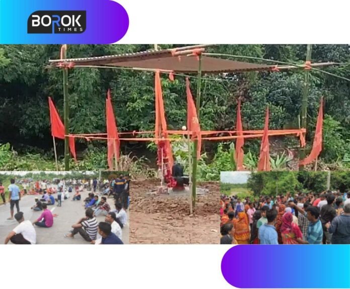 Tensions prevailed at the Nandannagar Palpara area of Agartala in the West Tripura district. Allegedly, a right-wing group named Hindu Yuva Vahini occupied land meant for a cemetery and erected a makeshift temple.