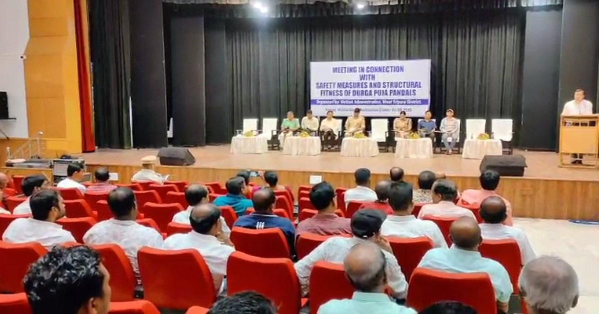 On Thursday, West Tripura District Magistrate Dr. Vishal Kumar and Superintendent of Police (West) Namit Pathak convened a meeting with representatives and organizers of community Durga Pujas at the government-run Muktadhara auditorium in IGM Chaumuhuni, Agartala. The session witnessed strong participation from various clubs and puja committees, who attentively listened to the guidelines and suggestions laid out by the administration.