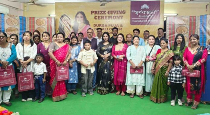 Swarnakamal Jewellers, one of Tripura’s most trusted and longstanding jewellery brands, organised the Prize Distribution Ceremony for its Durga Puja Sharadargha and Diwali Dhanteras Dhansamriddhi festive offers at the Agartala Press Club. The event witnessed enthusiastic participation from customers across the state, with winners honoured under the Mega, Bumper, and Daily Lucky Draw categories.