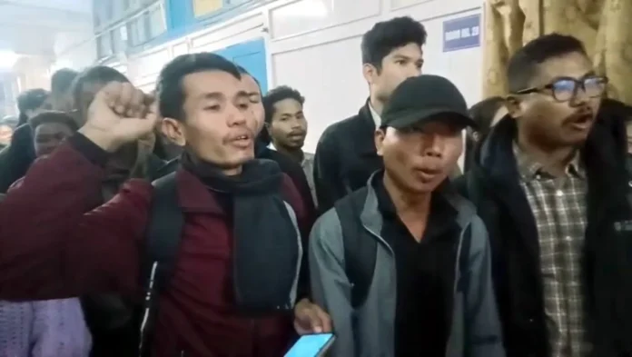 Angered by the response, the students locked the office gates and staged a sit-in protest inside the premises. The demonstration soon intensified as students shouted slogans and demanded accountability.