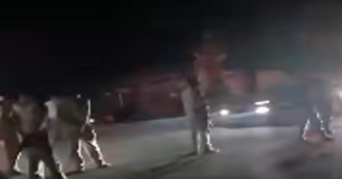 In Kamalpur’s Lambu area, Tipra Motha supporters blocked roads during a public meeting held by BJP candidate Ananta Debbarma. Police intervened to clear the roads, but clashes broke out during the process.