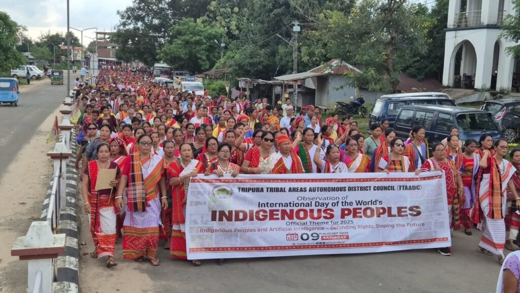 A large number of Tripuri people gathered at Khumulwng, the headquarters of the Tripura Tribal Areas Autonomous District Council (TTAADC), to observe the International Day of the World’s Indigenous Peoples with vibrant cultural displays, speeches, and community participation. The event was organized under the visionary leadership of Royal scion Pradyot Manikya Debbarma, drawing attention to the heritage, rights, and identity of indigenous communities in the region.
