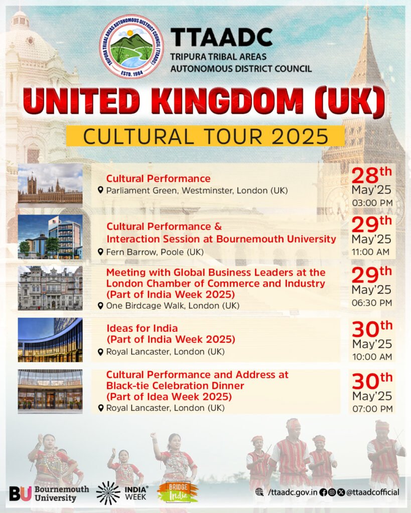 Tripura Tribal Areas Autonomous District Council (TTAADC) has proudly announced its first-ever international cultural tour — the TTAADC United Kingdom (UK) Cultural Tour 2025.