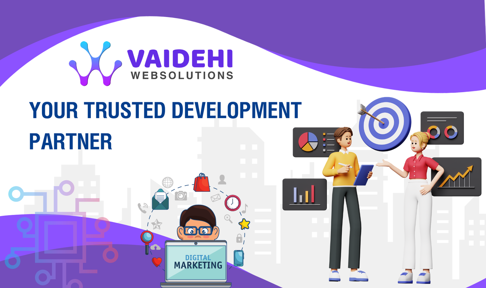 Vaidehi Web Solutions is a force to be reckoned with in the fast-paced world of IT solutions and services, displaying its superiority as the pinnacle of digital marketing expertise with pride. Leading the field in website development and design, social media marketing, app development, digital marketing, visiting card and logo design, and SEO, the company stands out for its unparalleled dedication to quality.