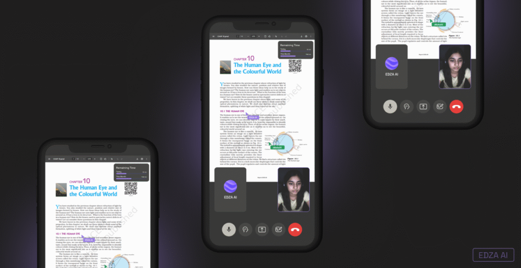 A newer solution isn’t another answer engine or content shelf; it attempts to act like a personal tutor. The approach centers on interactive co-solving (not just final answers), teaching from the student’s own notes, and structuring explanations the way marks are awarded. Systems such as Edza AI now operationalize this with: voice tutoring in Indian languages, a shared whiteboard for step-by-step work, screensharing to “teach from your notes,” adaptive testing driven by recent mistakes, and persistent memory to avoid repeating failed explanations.