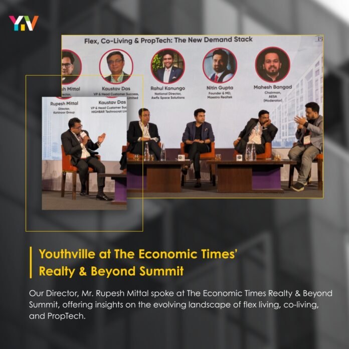 Pune, India — It was a moment of immense pride for the Youthville and Kohinoor Group family as Mr. Rupesh Mittal, Director at Kohinoor Group, was invited as a chief panel guest at The Economic Times – Reality & Beyond Summit held at Novotel, Pune. Surrounded by the country’s top builders, developers, real estate strategists, and PropTech leaders, Mr. Mittal represented Youthville Hostels — a fast-growing co-living & student housing & co-living brand in West India — and Kohinoor Group on a national platform.