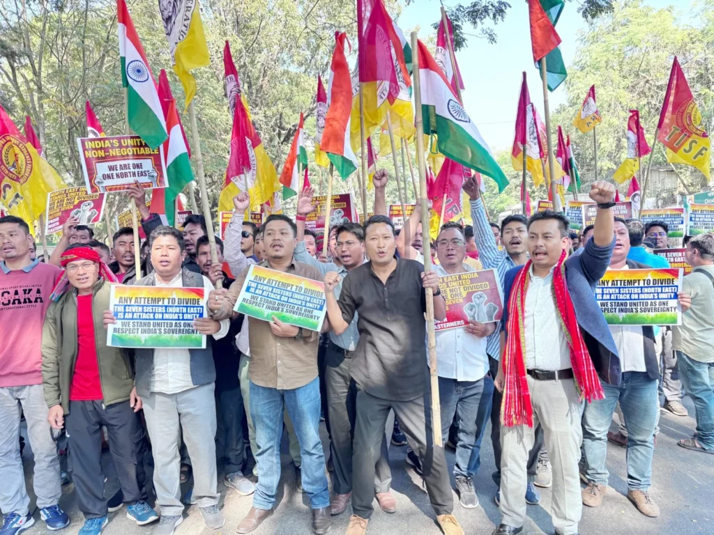 Agartala witnessed strong public protests on Friday as members of the Youth Tipra Federation (YTF) staged a demonstration against controversial remarks made by Bangladesh’s National Citizens Party (NCP) leader Hasnat Abdullah. The leader allegedly threatened to separate India’s northeastern states from the country, triggering widespread outrage across Tripura.